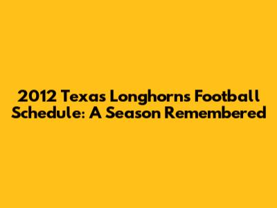2012 Texas Longhorns Football Schedule: A Season Remembered