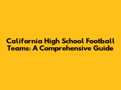 California High School Football Teams: A Comprehensive Guide