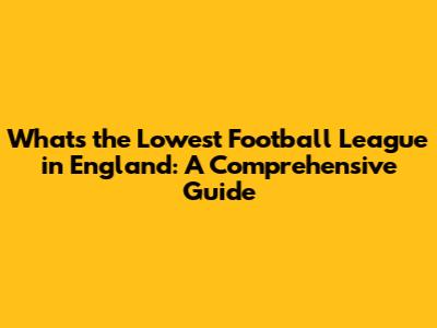Lowest Football League In England: A Comprehensive Guide
